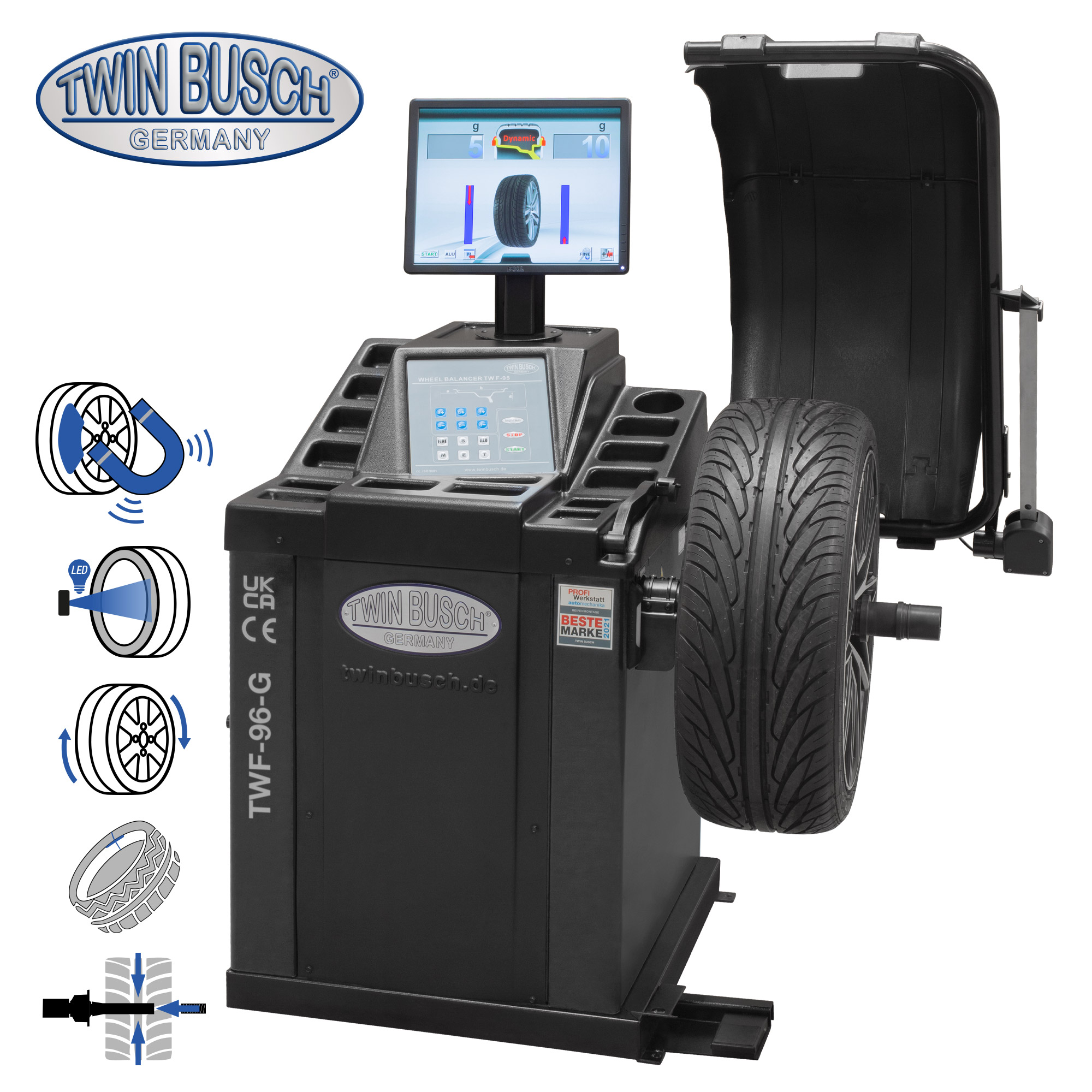 Szybka i wygodna praca dzięki pneumatycznemu mocowaniu koła. TW F-96-G wyposażona jest w laserowy system pozycjonowania do dokładnego nakładania ciężarków klejących w pozycji na godzinie 6 lub 12. Ponadto zaświeca się dioda LED dla lepszej widoczności.